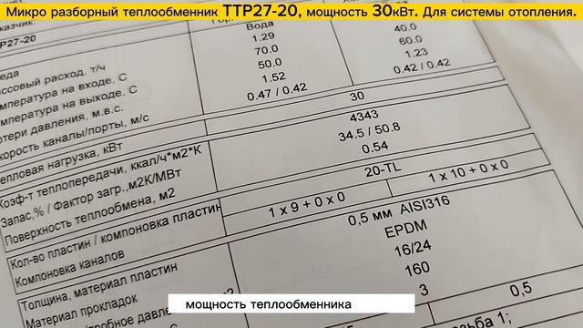 Теплообменник микро разборный пластинчатый ТТР27-20 - 30 кВт для системы отопления здания 300м2.