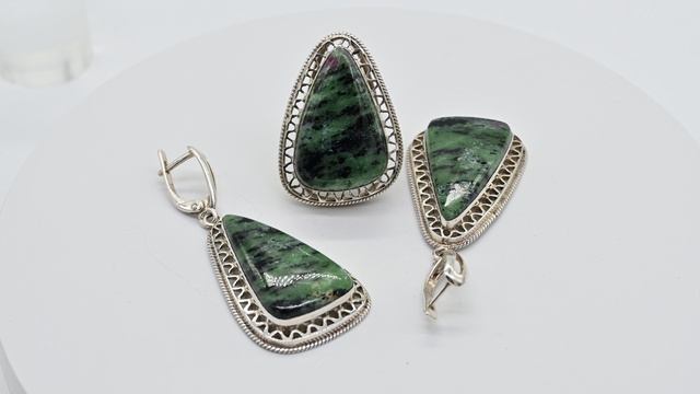 Кольцо и серьги из цоизита, вес 25,3 г, размер-18 рс175001