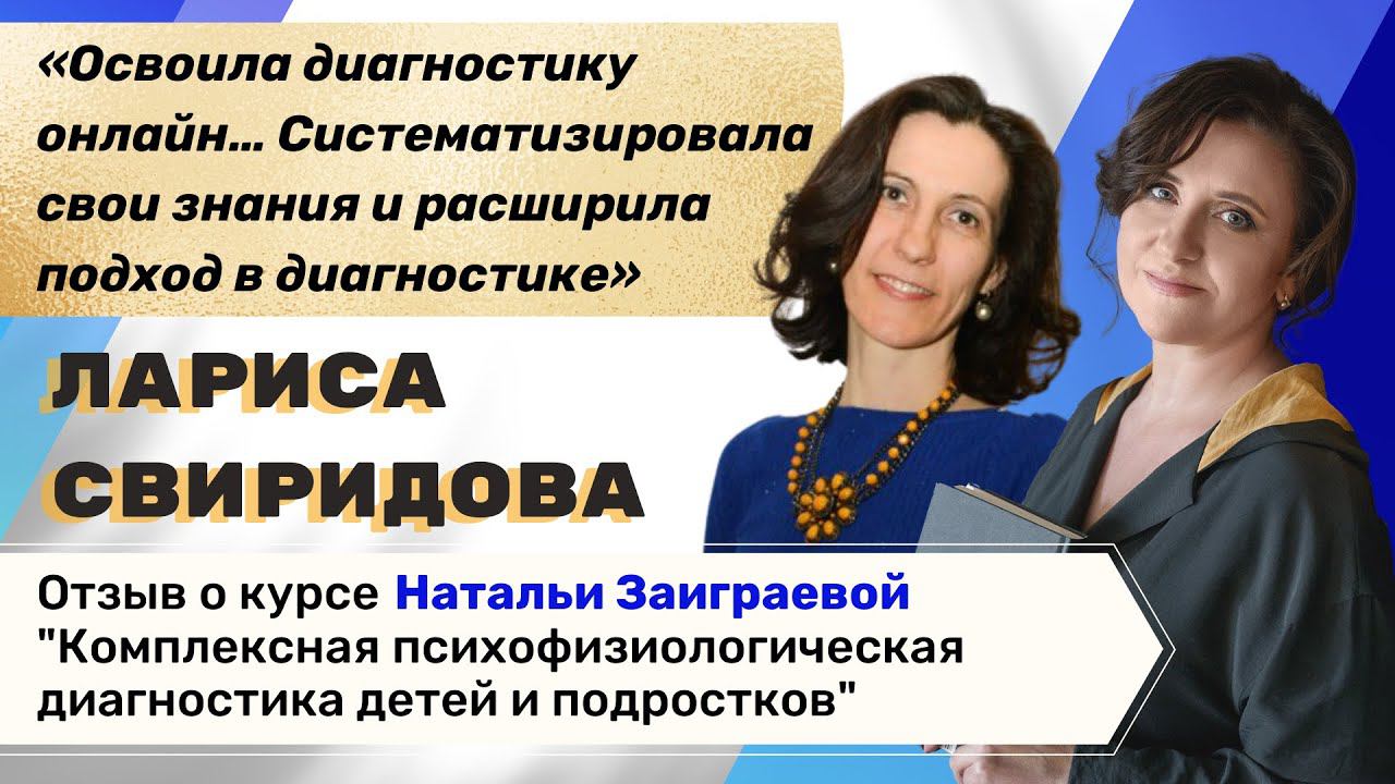 Отзыв Ларисы Свиридовой о курсе "Комплексная психофизиологическая диагностика от 3-х до 18 лет"