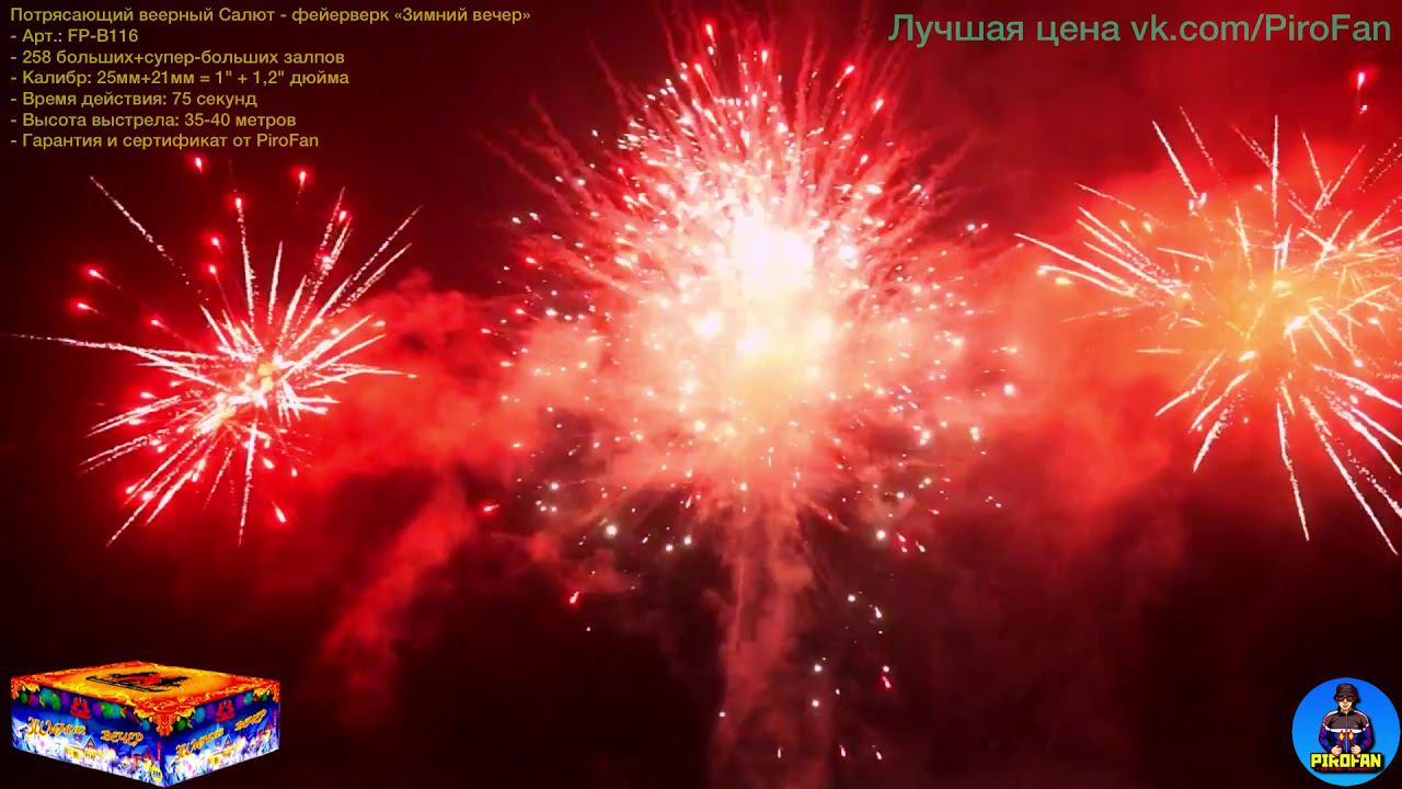 Шикарнейший салют 258 залпов разнокалиберных, Fp-b116 фейерверк "Зимний Вечер" 1"+1,2" в PiroFan
