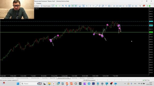 Трейдинг и инвестиции Обзор рынка акций 23-01-2026 AXP BAC CAT CSCO EBAY GE GILD IMB NFLX