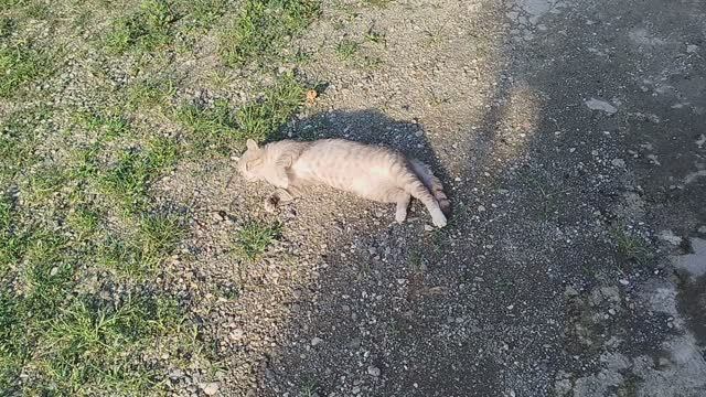 кот лежит играется