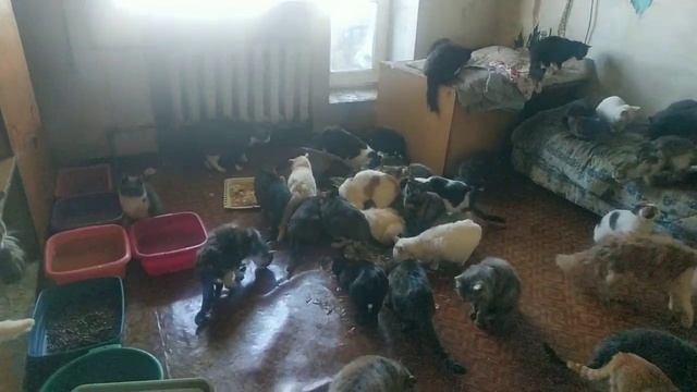 Одни котики начали обедать, другие ждут свою очередь