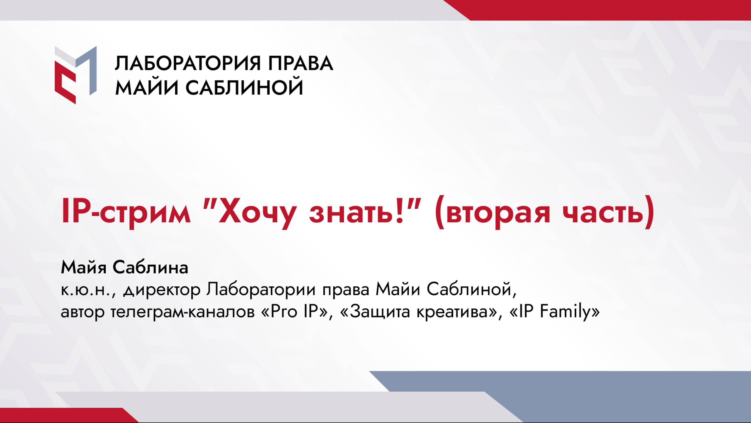 Вторая часть IP-стрима с Майей Саблиной по защите интеллектуальной собственности в формате «вопрос-ответ». 00:00 – приветствие 02:15 – совладение IP: интересные примеры из судебной практики (товарные знаки, музыкальные произведения, договоры и др.) 07:58 – насколько справедливо распределение прав на РИД при заключении соглашений о совместных разработках между бюджетными учреждениями и коммерческими организациями 12:05 – совладение частью программного обеспечения: есть ли риски у покупателя целого ПО, если часть принадлежит, в том числе, другому лицу 17:35 – неделимость исключительного права: возможна ли уступка права по соглашению об использовании и распоряжении РИД, заключённому между правообладателями 22:26 – установление однородности товаров и услуг 28:00 – когда юристу пора начинать практиковать защиту интеллектуальной собственности 37:38 – недопустимость отчуждения исключительного права на товарный знак по договору по причине введения потребителя в заблуждение 42:20 – лайфхаки и практика доказывания общеупотребимости обозначения, значимость соцопросов 52:00 – заинтересованность по ст.1483 и 1486 ГК РФ: аннулирование товарного знака и прекращение вследствие его неиспользования 57:27 – о судьбе служебных произведений, созданных работниками в процессе выполнения трудовых обязанностей в советский период 01:01:17 – нюансы в споре о признании регистрации товарного знака актом недобросовестной конкуренции 01:09:08 – анонс третьего потока курса “Практические аспекты защиты интеллектуальной собственности” 01:10:50 – итоги Телеграм-каналы Майи Саблиной по IP-тематике: Pro IP – https://t.me/ipmir Защита креатива – https://t.me/ipprotection IP Family – https://t.me/ipfamily #вебинар #ндк #ст1486 #пазис #служебные #заинтересованность #однородность #отчуждение #совладение