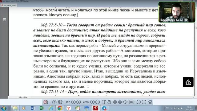 №71.Евангелие от Мф. 21:45. "Притча о брачном пире" Владислав Ковачов 30.07.2025
