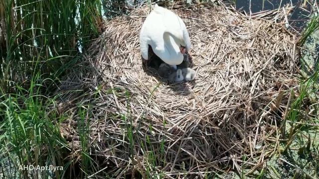 В Артёмовских лугах сразу в двух лебединых семействах появились птенчики. Нижегородцам удалось запечатлеть первые мгновения жизни пернатых.