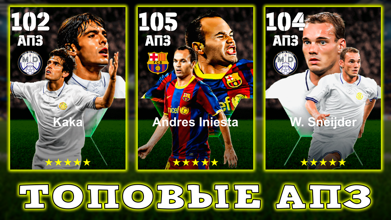 Топ АПЗшники в eFootball Иньеста 105 Снайди 104 Кака 102