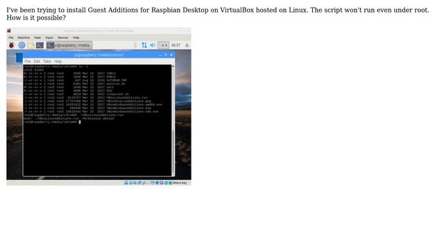 Raspberry Pi: Raspberry Pi Desktop, Guest Additions: Access denied under root Helpful? Please support me on Patreon: https://www.patreon.com/roelvandepaar With thanks & praise to God, and with thanks to the many people who have made this project possible! | Content (except music & images) licensed under CC BY-SA https://meta.stackexchange.com/help/licensing | Music: https://www.bensound.com/licensing | Images: https://stocksnap.io/license & others | With thanks to user Juan Ojeda (raspberrypi.stackexchange.com/users/84106), user Ghanima (raspberrypi.stackexchange.com/users/19949), user Alexey Orlov (raspberrypi.stackexchange.com/users/100387), and the Stack Exchange Network (raspberrypi.stackexchange.com/questions/95576). Trademarks are property of their respective owners. Disclaimer: All information is provided "AS IS" without warranty of any kind. You are responsible for your own actions. Please contact me if anything is amiss at Roel D.OT VandePaar A.T gmail.com