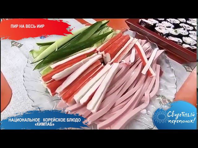Кимпаб — это корейские роллы. Кимпаб в Корее вездесущ! В отличие от японских, в них не используется сырая рыба. Обычно в такие роллы добавляют свежие или квашеные овощи, омлет или морепродукты. Кимпаб — это завернутый в колбаску лист морской капусты с рисом и начинкой из овощей, сыра и не только. Некоторые называют его «японским роллом», но насколько верно такое сравнение? Нет, это два разных блюда, несмотря на то, что история корейского кимпаба и японских роллов в прошлом пересекались. Сим Татьяна, ОРО ООО «Общероссийское объединение корейцев» показыла как корейцы делают кимпаб. А готовить его на свадебный стол или нет - это Вам решать!
