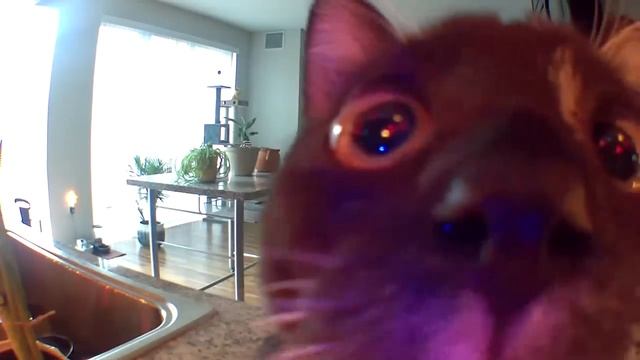 Кошка Захра не понимает откуда идёт голос хозяина