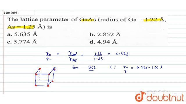 The lacttice parameter of `GaAs` (radius of `Ga = 1.22 Å, As = 1.25 Å`) is