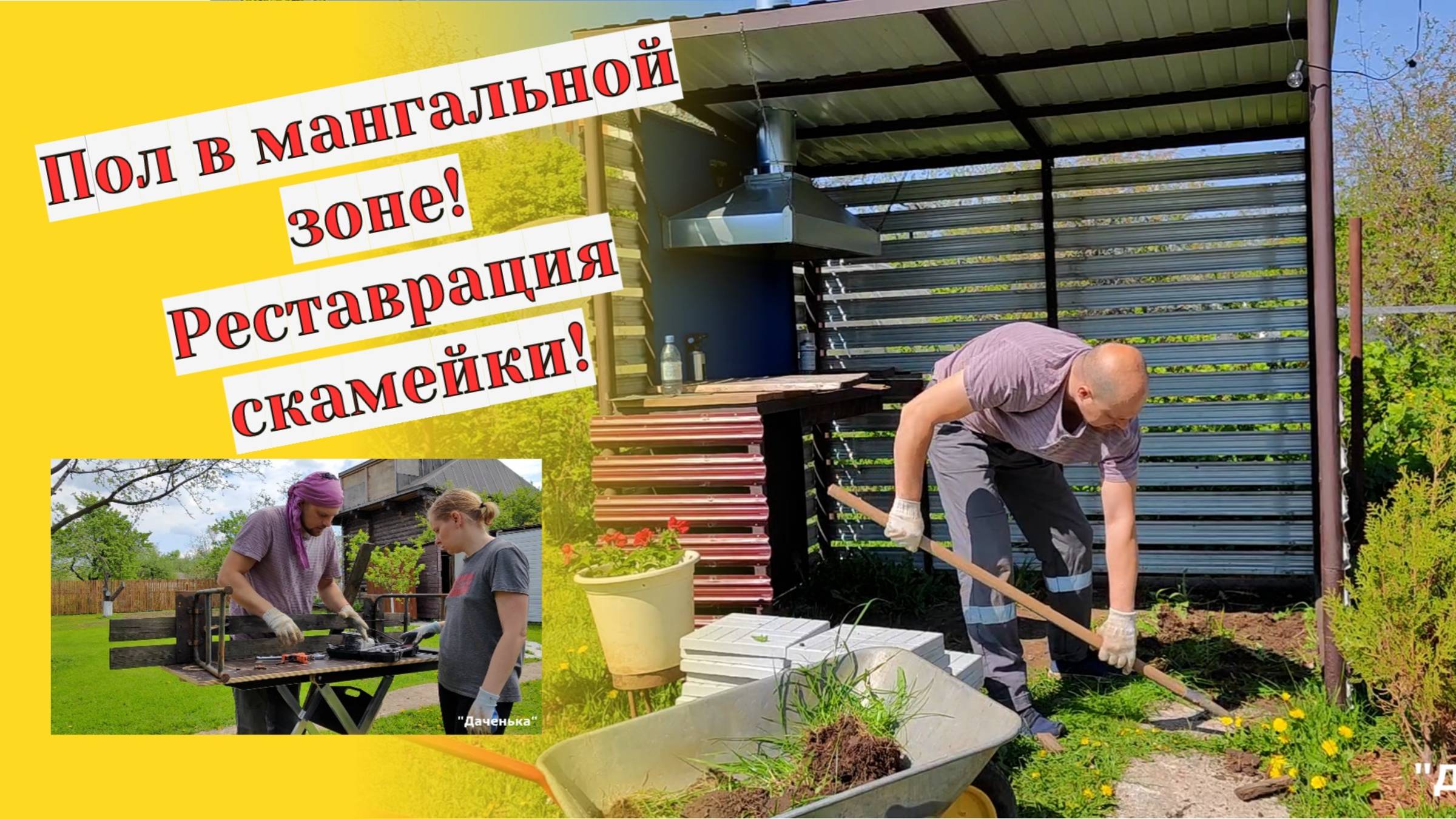 Даченька #88 Пол в мангальной зоне своими руками, реставрация скамейки!