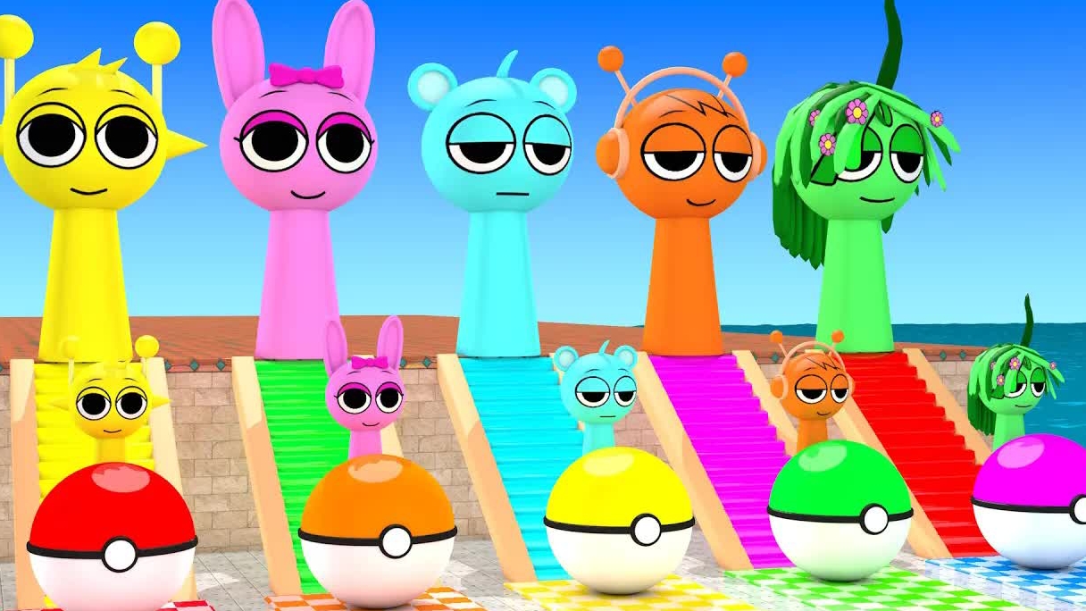 Пинки Скай Орен Грей Саймон 3d-игра с длинными горками для животных, Забавная 3d-раскраска животных в клетке, игровое видео