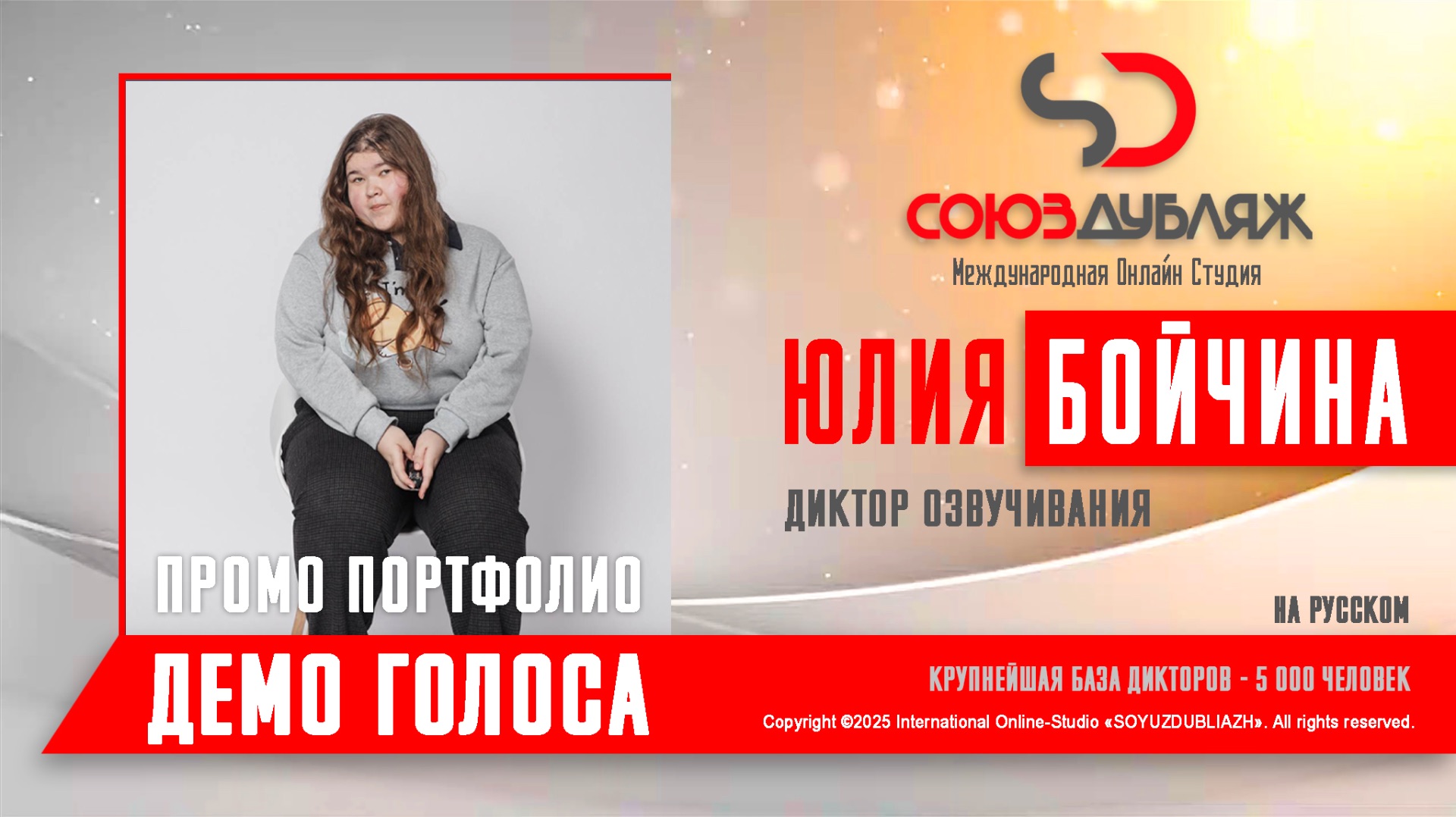 Юлия Бойчина | Диктор озвучивания | База Дикторов "СОЮЗДУБЛЯЖ"