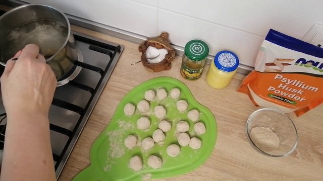 Ленивые пельмени. Сегодня мы приготовим ленивые пельмени. Для этого поставим воду на огонь. Порежем как можно мельче 50 грамм репчатого лука. Добавим в фарш. Фарш у нас уже готовый, отбитый, с добавлением по 1/3 чайной ложки паприки, кориандра и соли. Хорошо перемешаем и будем крутить небольшие шарики. Шарики готовы. Насыпем в креманку 1 столовую ложку псилиума с горкой и обваляем в нем каждый шарик. Вода закипела, добавим соль. И пока отставим. Мы обваляли каждый шарик в псиллиуме, теперь это нужно повторить обваляв каждый шарик ещё раз. Они готовы, псиллиум остался, мы специально взяли с горкой, чтобы было удобно обкатать. В кипящую воду опустим шарики, аккуратно перемешаем, чтобы не прилипли и будем варить 7-10 минут, появившуюся пену обязательно соберём, чтобы она не попала в тарелку, а пока подготовим посуду в которой будем подавать. Добавим 1 чайную ложку горчицы горошком и 1 чайную ложку топлёного масла. Все шарики всплыли, покипели, можно доставать. Хорошо перемешаем с маслом и горчицей, посыпем специями, можно зеленью. Вся порция получилась на около 0,5 хе. Такое впечатление, что мы использовали не псиллиум, а рисовую муку или крахмал, пробуйте это вкусно, низкоуглеводно и разнообразно. Ленивые пельмени! 200гр.фарша(кур.грудка) 50гр.репч.лука(0.33ХЕ) 1ст.л.псиллиума 1ч.л.горчицы горошком 1ч.л.топленого масла 1ч.л.соли 1/3ч.л.кориандра 1/3ч.л.паприки В фарш добавить мелко порезанный лук, пол.ч.л.соли, паприку и кориандр, хорошо перемешать и отбить, сформировать маленькие шарики, обвалять в псиллиуме каждый, затем обвалять каждый ещё раз, отправить в кипящую подсоленную воду на 7-10мин.,в процессе варки удалить пену, достать, добавить масло и горчицу Итого : 0.33ХЕ Приятного аппетита! Для связи - stimulusmax@gmail.com #пельмени #рецепт #еда_диабетика #диабет #макс_стимул #диабетик