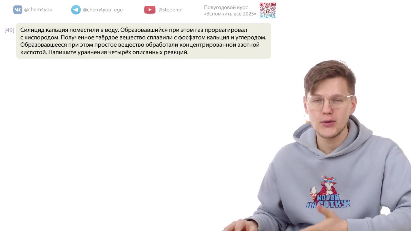 📗 Учебник по органической химии. Углубленный уровень, 10 класс, ФГОС: https://stepenin.ru/tasks/ebook-10 📑 Много тестов для подготовки к ЕГЭ по химии: 1. Задания по неорганике (больше 2000): https://stepenin.ru/tasks/common 2. Вся база заданий (больше 6000): https://stepenin.ru/tasks 💯🧠 Ждем всех на наших курсах подготовки к ЕГЭ: 👉 Курс подготовки к ЕГЭ-2025 по химии для 11 классов: https://stepenin.ru/go/6u3araee 👉 Курс подготовки к ЕГЭ-2026 по химии для 10 классов: https://stepenin.ru/go/H45L7wZZ 📚 Рабочая тетрадь по органической химии: https://stepenin.ru/store/book/book-organic 📚 Книга «Тематические тесты» (500 страниц) : https://stepenin.ru/store/book/tests-bigbook 📚 Книга «40 вариантов к ЕГЭ-2025» (350 страниц): https://stepenin.ru/store/book/sbornik30 📚 Задача 33. Углеводороды: https://stepenin.ru/store/book/hydrocarbons-book ============================= 🧪 Подготовка к ЕГЭ по химии на самые высокие баллы на наших курсах: https://stepenin.ru/go/6u3araee Телефон Андрея Степенина: +7 926 625-73-33 📚 Много полезного образовательного контента на наших площадках: 🐈 ВК химия: https://vk.com/chem4you 🦭 ВК биология: https://vk.com/bio4you ✈️ Химическая тележка 11 класс: https://t.me/chem4you_ege ✈️ Химическая тележка 10 класс: https://t.me/stepenin10 ✈️ Биологическая тележка: https://t.me/bio4you