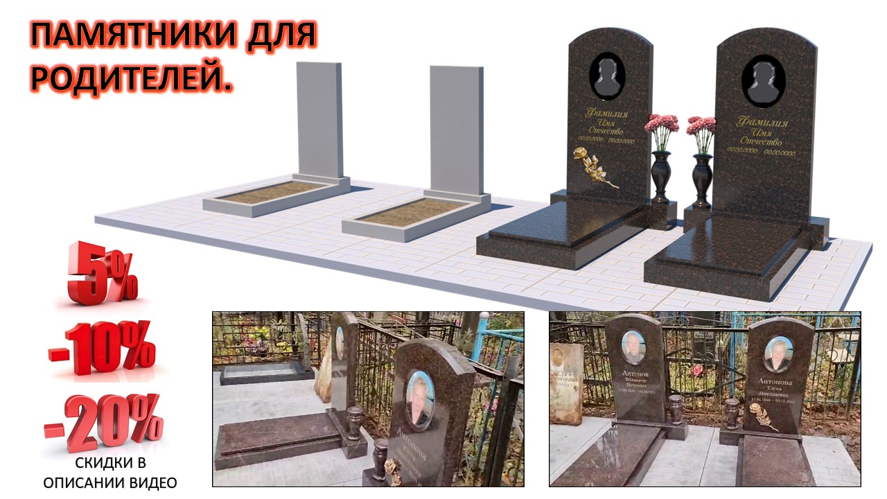 СКИДКА 10% при заказе гранитного памятника на фундаменте ритуальных плит в период с 1 марта по 1 ноября. СКИДКА 20% зимняя в период с 1 ноября по 1 марта Собственное производство ритуальных плит, памятников, оград, эксклюзивных комплексов, Оказываем такие услуги как проектирование, изготовление, а так же последующую установку памятников, ритуальных плит, оград. Изготавливаем памятники любых форм и размеров, в зависимости от пожелания заказчика. Работаем под ключ. От разработки эскиза до полного благоустройства. Заводские цены, гарантия и скидки. Мы всегда рады вам помочь, подсказать и проработать каждую деталь вместе с вами. Посмотреть работы можно на сайте: https://ритуальныеплиты.рф/ Отдел заказ И задать вопрос Можно по телефону 8 967 289-77-68 и 8 925 416-05-04, Также можно написать на WhatsApp или Telegram. Задать вопрос и посмотреть работы можно на сайте: https://ритуальныеплиты.рф/ ➤ Каталог гранитных памятников которые изготавливаются на фрезерном станке ЧПУ: https://disk.yandex.ru/i/RMJxtt5JcS3Nzw ➤ Каталог для выбора вертикальных моделей: https://disk.yandex.ru/i/NJ2E6x2T9DNuHQ ➤ Каталог горизонтальные или общие модели: https://disk.yandex.ru/i/l6_9AhHmMkz-QA ➤ Эксклюзивные модели: https://disk.yandex.ru/d/VXMdyCDinv17bA ➤ Прайс ритуальных плит: https://disk.yandex.ru/i/wjeXDDQyQ0kOhQ #гранитныепамятники #каккрасивооформитьпортретнаобщийпамятник #ритуальныеплиты #какоформитьпортретнапамятник #какоформитьпортрет #каккрасивооформитьпортретнаобщийпамятник #какоформитьпортретнапамятник #памятникиизбелогогранита #памятникиизчерногогранита #памятникииззеленогогранита #памятникиизкрасногогранита #высокаягранитнаяограда #гранинаяограданасъёмномфундаменте #съёмныйфундаментсвысокойгранитнойоградой #ритуальнаяплитаподпамятник #ритуальныеплитыподпамятники #ритуальныеплитыдлякладбища #ритуальныеплитынакладбище #накладбищеритуальныеплитыподфундамент #гранитныекомплексы #надгробныеплиты #надгробныеплитыизбетона #ритуальныеплитымощения #ангел #памятникангел #мастерскаясергия #памятники #красивыйпамятник #памятниксангелом #ангелнапамятнике #памятникиизгранита #памятникиизмрамора #надгробие #памятникнакладбище #тротуарныеплиты #установкапамятника #памятник #гранит #ритуальныеплиты #кладбище #тротуарнаяплитка #установкапамятников #изготовлениепамятников #установкапамятниканамогилу #памятникнамогилу #купитьпамятник #благоустройствомогилы #гранитныйпамятник #монтажпамятника #обустройствомогил #гранитныеплиты #фундаментподпамятник #благоустройствомогил #надгробныепамятники #бетонплит #плитанамогилу #надгробие #какустановитьпамятник #плитынамогилу #тротуарнаяплитканакладбище #заказатьпамятник #крупноформатнаятротуарнаяплитка #тротуарнаяплитканамогилу #установитьпамятник #плитыподпамятник #монтаж #плитканакладбище #гранитнаямастерская #строгиекрасивыепамятники #изготовлениепамятников #изготовлениенадгробныхплит