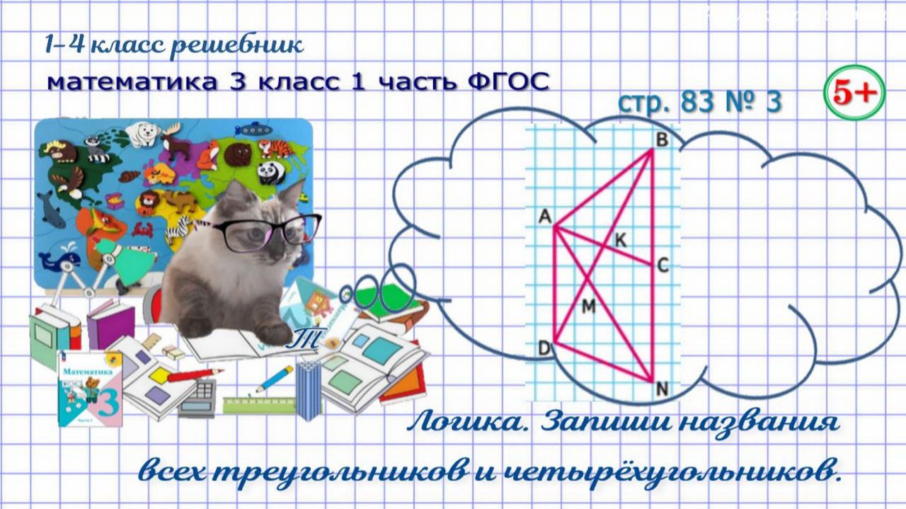 Запиши названия всех треугольников с вершиной А и четырёхугольников со стороной АМ. Логическое задание. Логика. Геометрический материал. Страница 83 номер 3 математика 3 класс 1 часть Моро 2023 г. ФГОС гдз Если нашли ошибку, напишите, пожалуйста, в комментариях. Сайт с текстовым содержанием: https://dzen.ru/id/650204661aba9b0ba4b2643e #обучениематематике#математика3класс1частьстр83номер3#геометрическийматериал#логика#логическоезадание#выпишивсетреугольникиичетырёхугольники#математика3класс1частьФГОС#математика3кл1чФГОС#математика3класс1частьморо2023#обучениедетей#длядетей#решебникматематика3класс#гдзматематика3класс#начальныеклассы#1-4классрешебник+