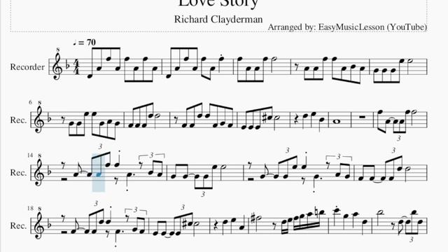 Suggest tutorials, vote songs, and connect to us on discord: https://discord.gg/4Gzb48U Get access to downloadable sheet musics, tabs, or get your request fulfilled: https://www.patreon.com/easymusiclesson You can also purchase a song request at Fiverr: https://www.fiverr.com/s2/58a585bdd9 Please like, share or subscribe! Comment and let us know how the videos have helped you. It keeps us going! :)Here is a sheet music/tab video on the song Love Story by Richard Clayderman on the recorder. A recorder sheet music arrangement which is transposed to notes that are easily played by recorder, for the song Love Story by Richard Clayderman. EasyMusicLesson teaches you to play the your favorite instrument, through well-arranged sheet music so that you too can learn how to play Love Story by Richard Clayderman on the recorder as fast as you can. A recorder sheet music with backing tracks to help your play the song better. The video plays in the original speed first then half speed. Skip to 1/3 of the video for half speed. Please note that you can also adjust playback speed with YouTube's default player settings. This channel teaches recorder, alto sax, flute, clarinet, trumpet, tenor sax, bass clarinet, trombone, piano. Here are the channels with other instruments: Violin: https://www.youtube.com/c/easyviolinlesson Viola: https://www.youtube.com/c/easyviolalesson Cello: https://www.youtube.com/c/easycellolesson Guitar, Ukulele, Baritone & Soprano Sax, Bassoon, Horn, Oboe, Tuba, Euphonium: https://www.youtube.com/c/easymusiclesson2 Music Box (For Relaxing Music Box Videos): https://www.youtube.com/c/easymusicbox Drum: https://www.youtube.com/c/easydrumlesson Kalimba: https://www.youtube.com/c/easykalimbalesson Harmonica: https://www.youtube.com/c/easyharmonicalesson Tin Whistle: https://www.youtube.com/c/easytinwhistlelesson Ocarina: https://www.youtube.com/c/easyocarinalesson Bass: https://www.youtube.com/channel/UC_kAr4oYDJsar_9Cu-wJRcA/ Chords of Recorder arrangement: D Min D Min A Dom 7 D Min Maj 7 F Maj Bb Maj A Maj E Min 7 A Dom 7 A Dom b9 D Min D Min A Dom 7 D Min Maj 7 F Maj Bb Maj A Maj E Min 7 A Dom 7 A Dom b9 D Maj D Dom 7 A Min 7 D Dom 7 G Min C Maj F Maj Bb Maj E Dim A Maj D Min A Maj D Min D Min G Min C Maj F Maj Bb Maj E Maj A Maj 7 A 7 Sus 4 A 7 Sus 4 D Min A Dom 7 D Min Maj 7 F Maj Bb Maj A Maj E Min 7 A Dom 7 A Dom b9 D Min F Maj Bb Maj Melody notes of Recorder: D4 A4 F5 A4 F5 A4 F5 A4 D4 A4 F5 A4 F5 A4 F5 F5 A4 A4 F5 F5 A4 A4 F5 F5 A4 Bb4 A4 G4 G4 G4 E5 E5 G4 G4 E5 E5 G4 A4 G4 F4 F4 F4 D5 D5 F4 F4 D5 D5 F4 G4 F4 E4 E4 E4 Db5 Db5 D5 E5 Bb4 A4 F5 A4 A4 F5 F5 A4 A4 F5 F5 A4 Bb4 A4 G4 G4 G4 E5 E5 G4 G4 E5 E5 G4 A4 G4 F4 F4 F4 D5 D5 F4 F4 D5 D5 F4 G4 F4 E4 E4 E4 Db5 Db5 D5 E5 A4 Gb5 D5 E5 Gb5 G5 A5 B5 C6 G5 A5 D5 Bb5 D5 Bb5 D5 D5 E5 E5 G5 Bb5 G5 A5 C5 A5 C5 C5 D5 D5 F5 A5 F5 G5 E5 G5 E5 F5 G5 A5 D5 F5 A5 Bb5 C5 D5 F5 F5 E5 F5 G5 Bb4 A4 Bb4 C5 E5 E5 D5 C5 Bb4 A4 Ab4 B4 D5 B4 Db5 A5 A4 D5 E5 A4 D5 E5 G5 A4 E5 G5 A5 A4 E5 G5 A5 E5 G5 A5 Db6 E5 G5 A5 Db6 G5 A5 Db6 E6 G5 A5 Db6 E6 A4 Db5 E5 G5 A4 Db5 E5 G5 Db5 E5 G5 A5 Db5 E5 G5 A5 E5 G5 A5 Db6 E5 G5 A5 Db6 G5 A5 Db6 E6 G5 A5 Db6 E6 A4 Db5 E5 G5 A4 Db5 E5 G5 A4 Db5 E5 A5 A4 Db5 E5 A5 A4 Db5 E5 A5 A4 Db5 E5 A5 F5 A4 A4 F5 F5 A4 A4 F5 F5 A4 Bb4 A4 G4 G4 G4 E5 E5 G4 G4 E5 E5 G4 A4 G4 F4 F4 F4 D5 D5 F4 F4 D5 D5 F4 G4 F4 E4 E4 E4 Db5 Db5 D5 E5 Db5 D5 E5 F5 D5 G4 F4 A4 E4 F4 D4 D4 Bb4 F4 A4