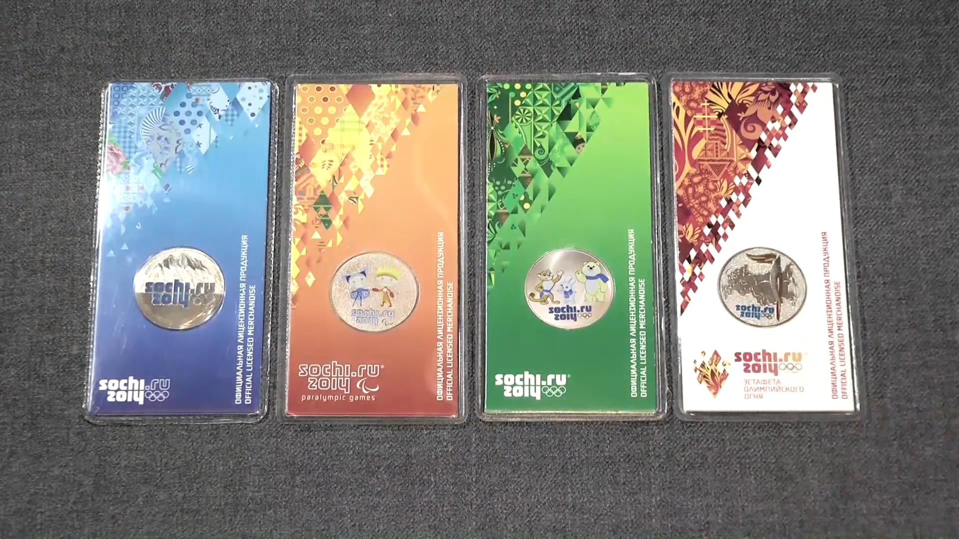 Цветные монеты 25 рублей Олимпиада в СОЧИ 2014.