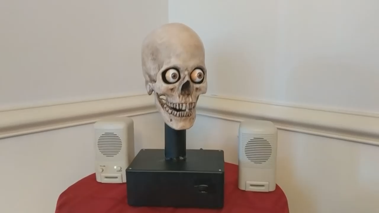 Парень прикрепил к своему голосовому помощнику Алексе череп, и теперь она рассказывает ему новости шевеля глазами и челюстями.