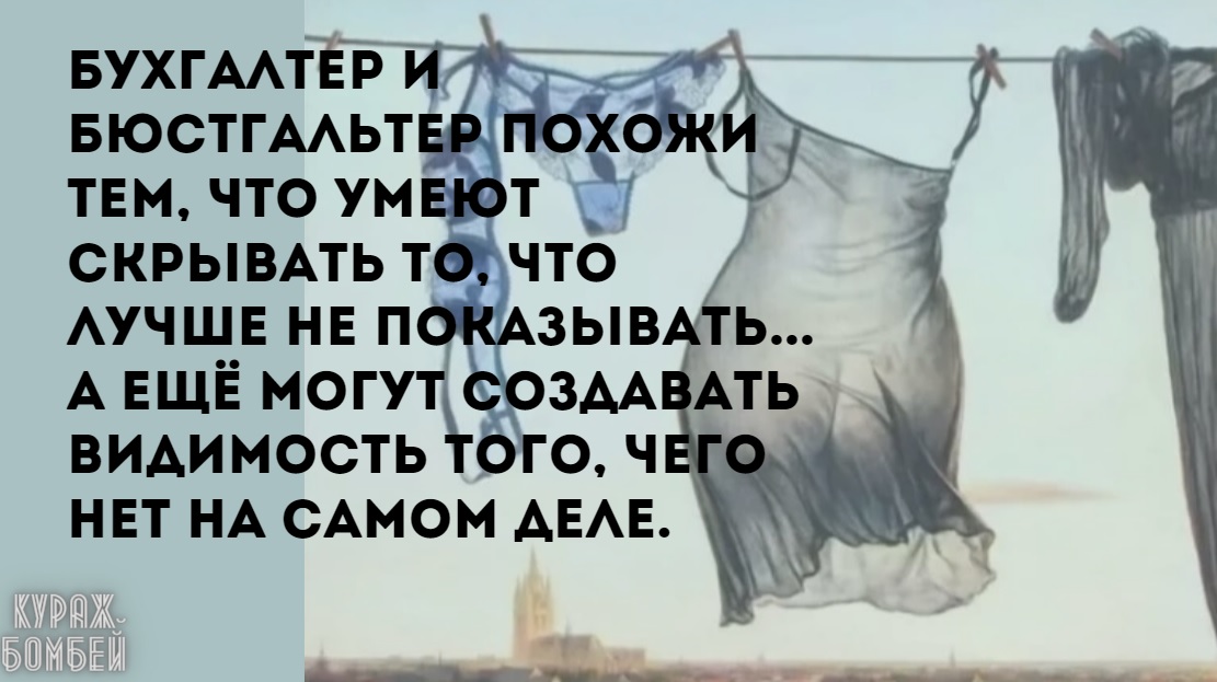Бухгалтер и бюстгальтер похожи тем, что умеют скрывать то, что лучше не показывать... А ещё могут создавать видимость того, чего нет на самом деле. Орать на разгневанную женщину разрешается только словом "Куплю!". Бабы - они как цыгане... Пригласила на чай, а сама в глаза пристально смотрит, на ухо что-то шепчет... Очнулся уже без трусов. Юмор, местами черный, без пошлости и тупизны. Анекдоты в картинках. Еврейские анекдоты. Юмористические подборки, связанные общей темой. Шутки, скетчи и мемы. Основной принцип: коротко и смешно. #юмор #анекдоты #приколы #чёрныйЮмор #смех #позитив #анекдотыСмешные #подборкаПриколов #смешныеПриколы #анекдотыЛучшие #мемы #шутки #аморальныеМемы #куражБомбей #анекдотыВкартинках #смешноеВидео #юмористическаяПодборка #юмористическийВыпуск
