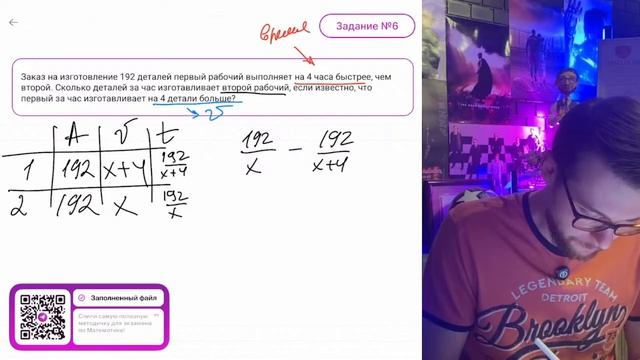 Заказ на изготовление 192 деталей первый рабочий выполняет на 4 часа быстрее, чем второй - №12512