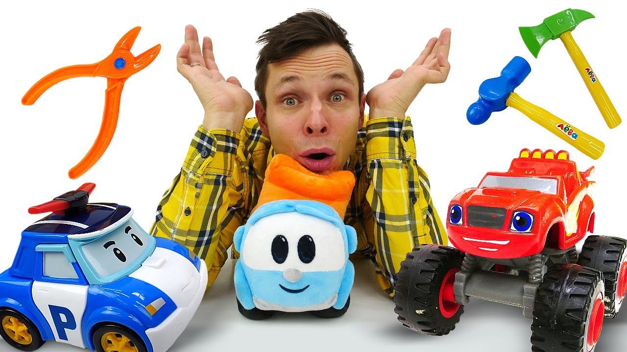 Мультики про игрушки - Грузовичок Лева и видео для детей про машинки и гонки - Чудо Машинка Вспыш и Робокар Поли гоняют наперегонки и играют в салки! Но вдруг Вспыш сломался, и ему потребовалась помощь. Пока его чинили, чуть не сломали шуруповерт. А потом Эвакуатор привез спортивную машинку. Она сломана, и чтобы ее починить, нужен тот же самый шуруповерт, но он все-таки сломался! Но не беда, Грузовичок Лева привезет набор инструментов! А пока малыш Лева в пути, посмотрим развивающий мультик про то как Грузовичок Лева собирает новую машинку на пульте управления!