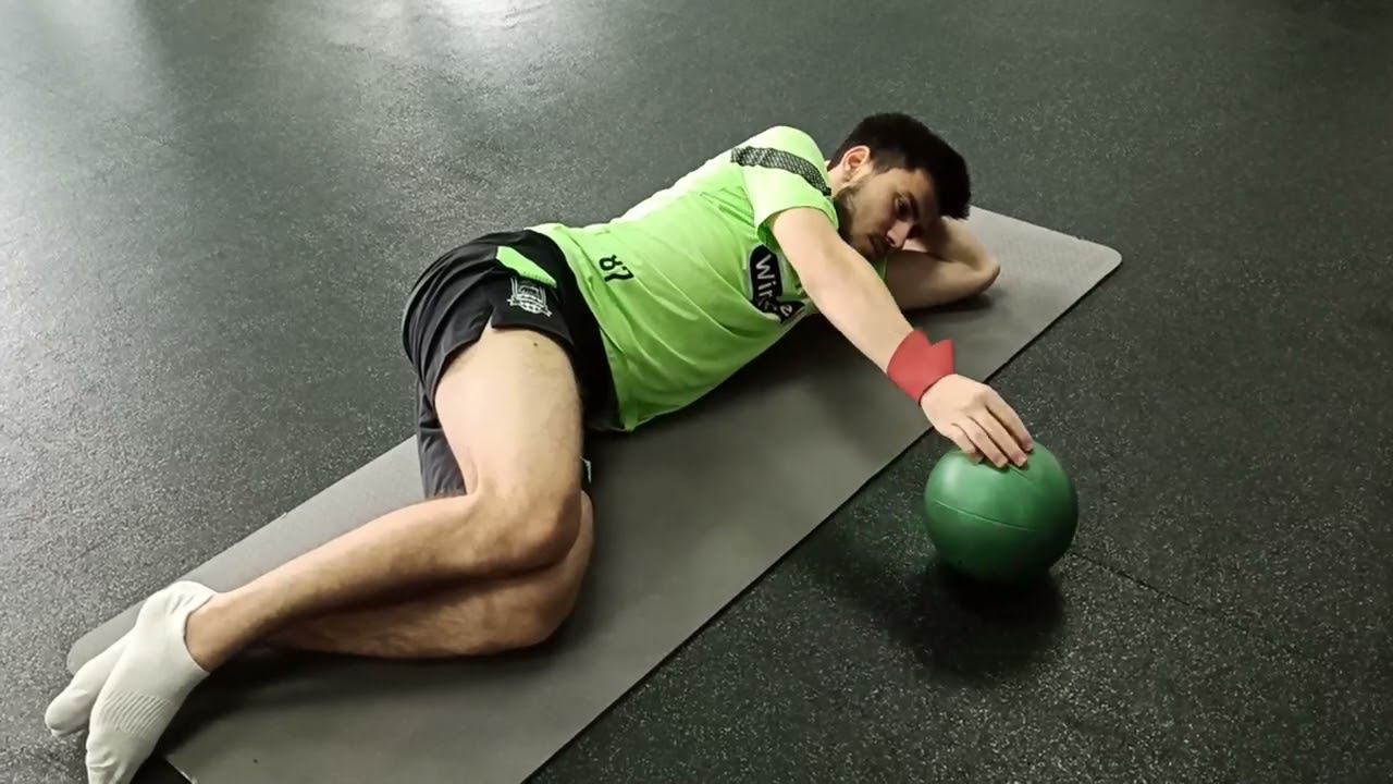 Сгибание разгибание плеча с мячом в положение лежа на боку