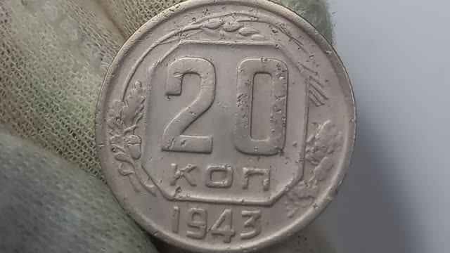 Куплена за 160 рублей. 20 копеек 1943 года. СССР. Краснокамский монетный двор.