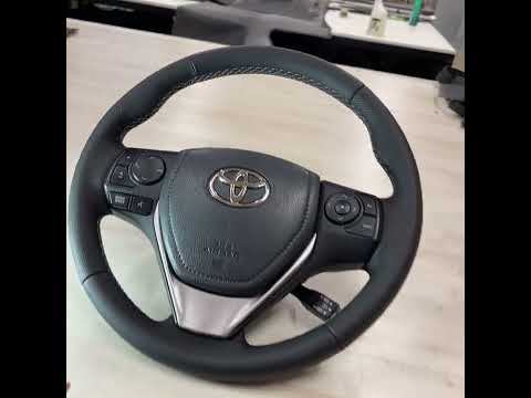 Перетяжка руля автомобиля Toyota Rav 4 с использованием экокожи и псевдоперфорации