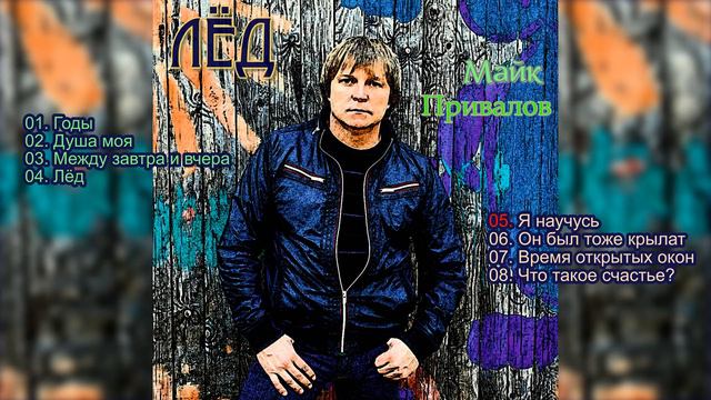 Майк Привалов - альбом "Лёд" 2007г. 00:00 Годы 04:35 Душа моя 09:06 Между завтра и вчера 13:52 Лёд 19:06 Я научусь 23:01 Он был тоже крылат 29:46 Время открытых окон 34:48 Что такое счастье?