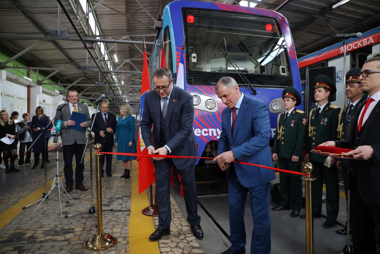 #КрымНаш! Видеорепортаж Александра БЕЛАНОВА. С 30 марта 2022 года в столице России на маршрут вышел тематический поезд «Республика Крым и город Севастополь», который будет курсировать по Арбатско-Покровской линии московского метро.
