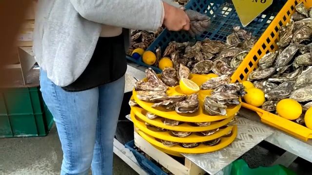Канкаль. Устрицы на рынке поедание на набережной.mp4