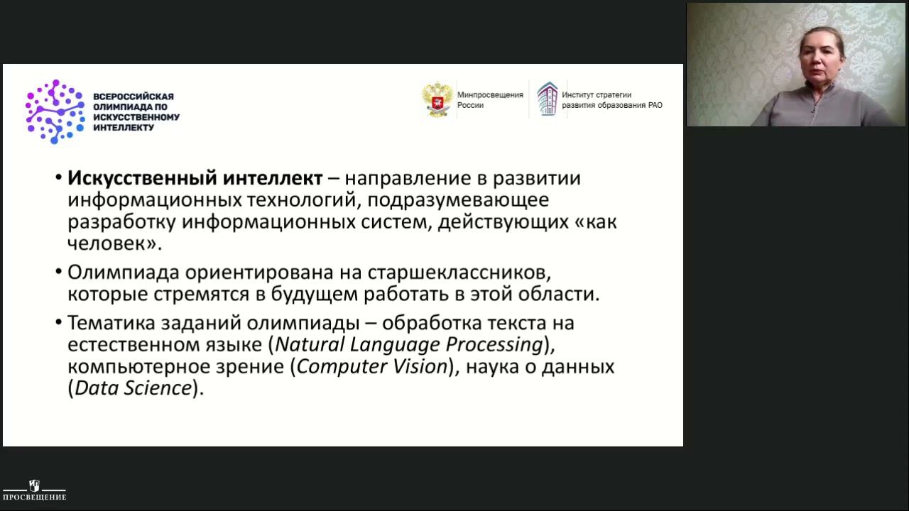 Самылкина Н.Н., д.п.н., профессор кафедры ТМОМИ ИМИ МПГУ, член методической комиссии олимпиады. Аналитический обзор результатов первой всероссийской олимпиады по искусственному интеллекту: формат соревнований, особенности заданий каждого этапа всероссийской олимпиады, способы проверки решений, материалы для подготовки к второй всероссийской олимпиаде по искусственному интеллекту в 2022 году.
