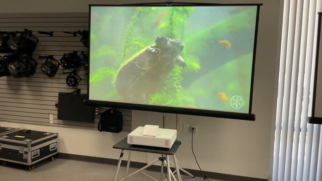 Example of the Epson Powerlite 800F on a 8' wide screen, the room has high ambient light.