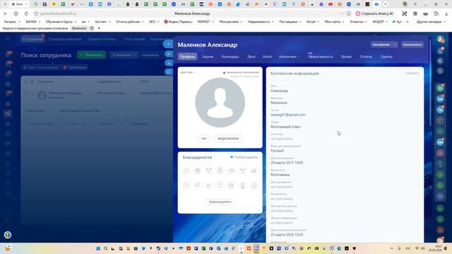 Заполнение карточки сотрудника в битрикс 24
