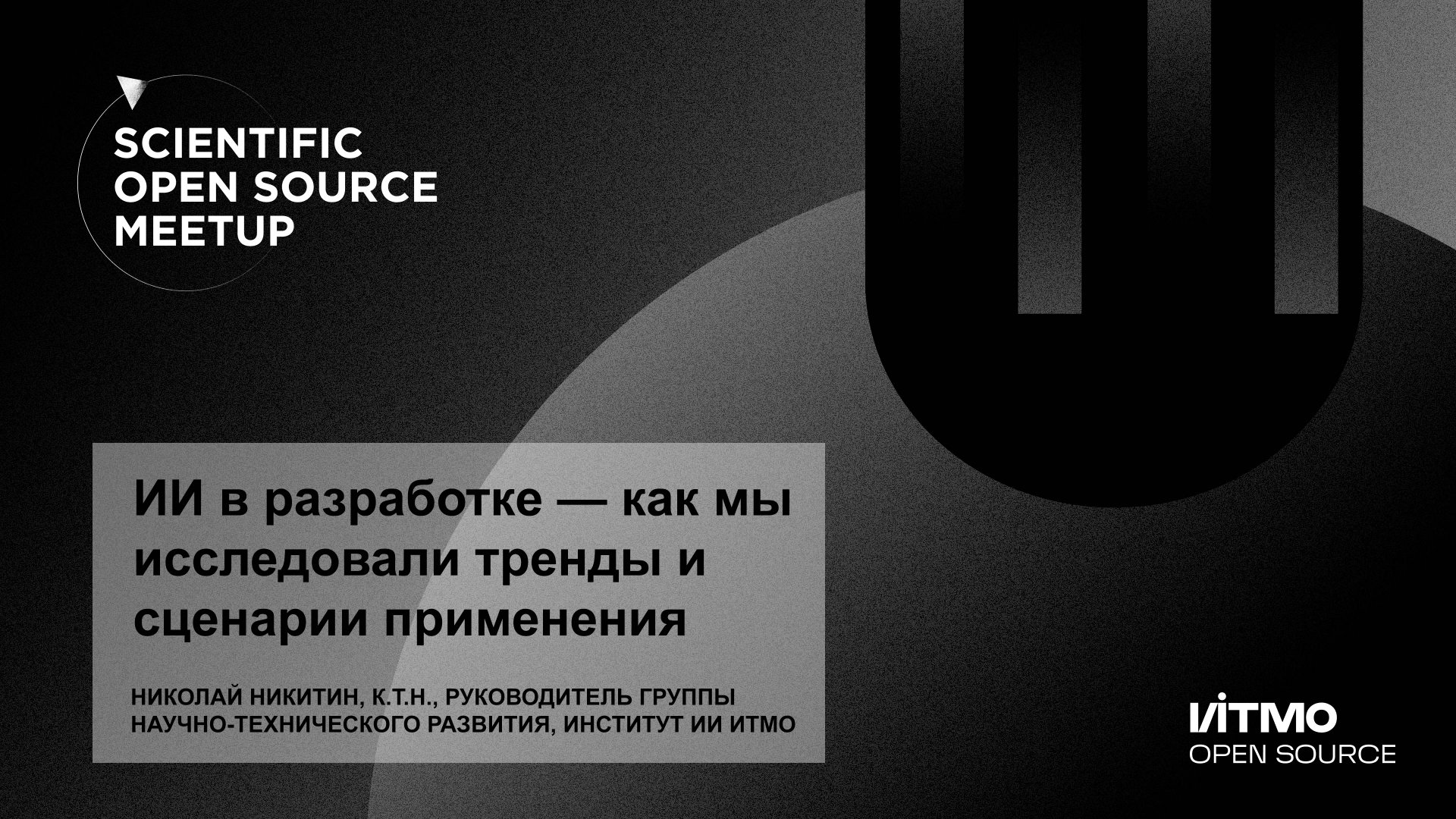 00:00 Николай Никитин, к.т.н., руководитель группы научно-технического развития Института ИИ ИТМО выступает с докладом в рамках осеннего Scientific Open Source Meetup 2 октября 2025. 01:12 Об активностях ITMO OpenSource, сообщества разработчиков и пользователей открытого кода с фокусом на науку и ИИ 03:21 Исследование ИТМО и Yandex B2B Tech: как ИИ меняет профессию программиста, какие инструменты выбирают команды и сколько компании готовы в них инвестировать 12:29 ИИ-агенты для кода от ИТМО 15:00 Разовьются ли ИИ-технологии насколько, чтобы сгенерированный код был лучше рукописного 17:52 Анализируют ли ИИ-агенты технические задания #AI #ИИ #БЯМ #LLM #opensource Чат сообщества разработчиков открытого кода ИТМО: t.me/itmo_opensource Больше о разработках и исследованиях Института искусственного интеллекта ИТМО можно узнать на сайте iai.itmo.ru