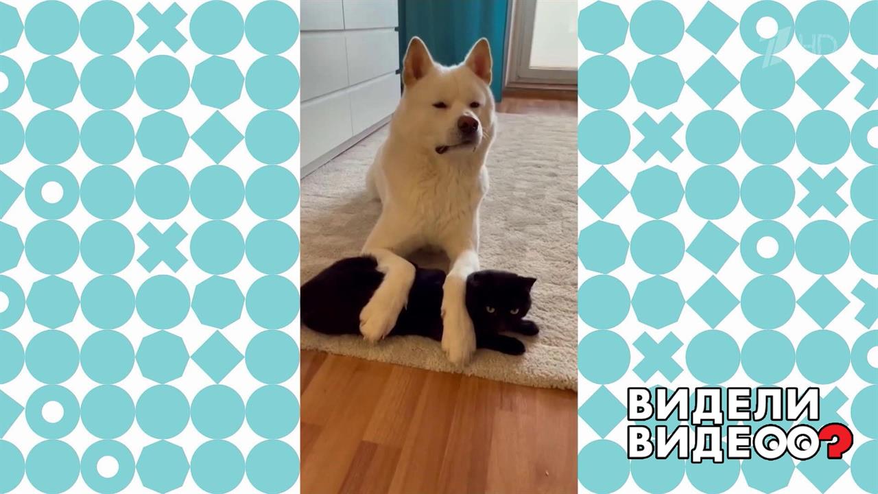 Акита-ину и кот - друзья навсегда. Видели видео? Фрагмент выпуска от 11.07.2021