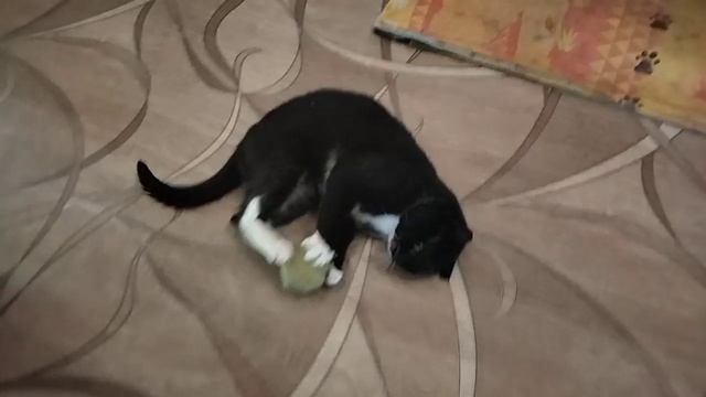 Ох и нравится нашему котику этот мячик