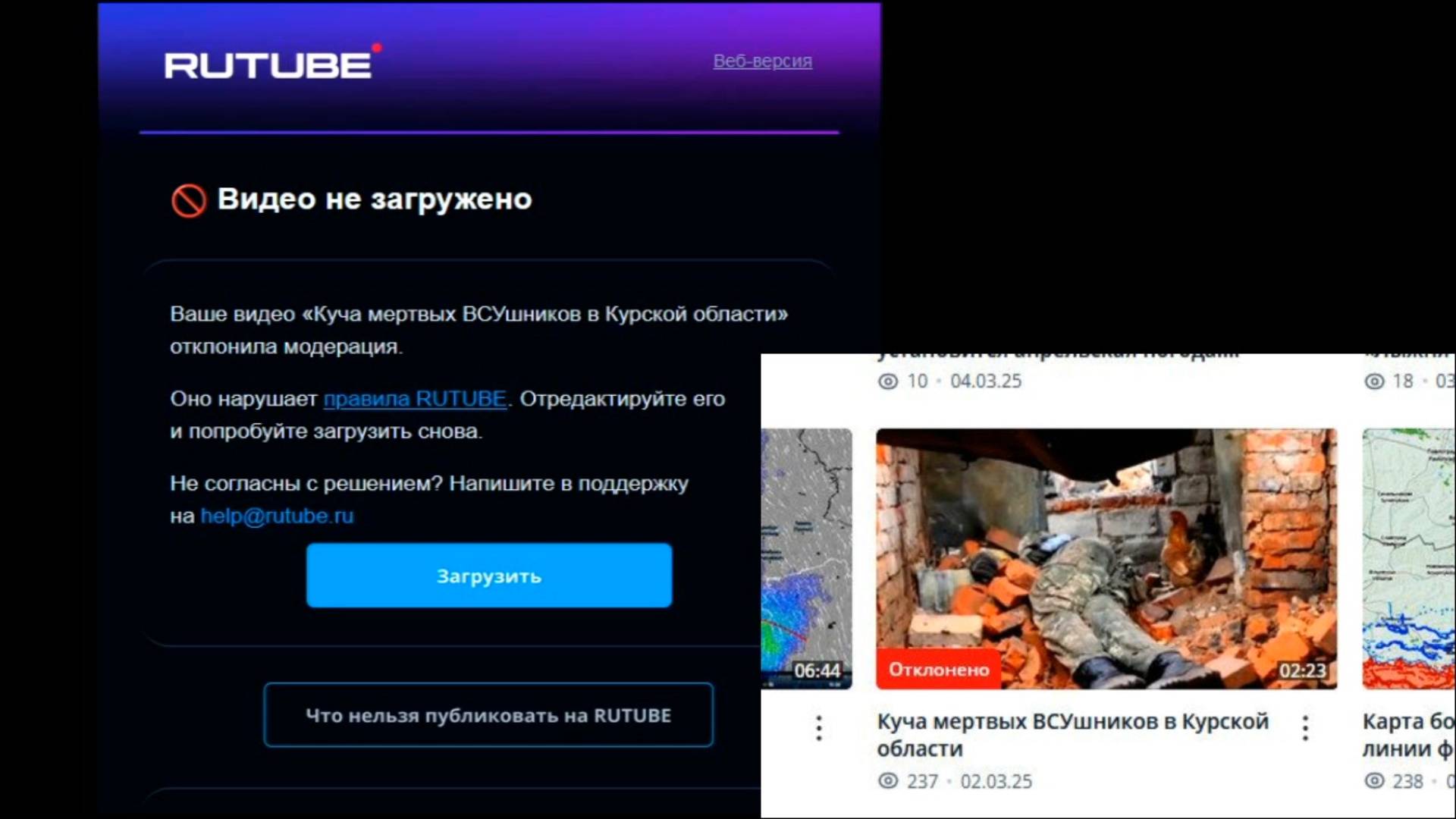 На RUTUBE возможно есть проукраинская цензура. Удалили ролик с 200-ми оккупантами в Курской области