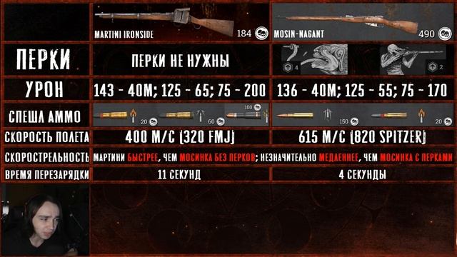 Обзор получился более объективный, чем мне думалось, возможно вам даже покажется, что я считаю это оружие лучше мосинки 🌚 Но короче оно юзабельно, в целом неплохо (не для меня, но неплохо) Видео получилось несколько длиннее, чем я рассчитывал, но зато туда уместилось ну практически все, что я хотел И сорян за громкую музыку, мне не хватило сил чекнуть ее в самые громкие моменты :( КАЧЕСТВО РОЛИКОВ ДРУГИХ ЮТУБЕРОВ В РОЛИКЕ УНИЧТОЖЕНО. Обязательно посмотрите полные ролики Хорнета и Гансмака, ибо скачивать их с ютуба и ререндерить оказалось не очень хорошей идеей и сделать в норм качестве я тупо не смог, извиняйте хорнет: https://www.youtube.com/watch?v=- kra8Rjv6ys&t=366s&ab_channel=hornet гансмак: https://www.youtube.com/watch?v=TIM7uwuxCRw&ab_channel=gunsmackk табличка падения дамага: https://www.reddit.com/r/HuntShowdown/comments/rnvgvk/hunt_showdown_damage_dropoff_over_distance_chart/ Таймкоды: 0:00 Интро Клип 0:36 Вступление 0:52 Мое мнение и мнение публики 1:38 Мешает ли хрень сбоку? 2:35 Сравнение. Перки 3:11 Цена 3:29 Дамаг 4:16 Табличка падения дамага 4:27 Спешл Аммо 6:03 Скорость полета пули 6:37 Стрельба вдаль 7:03 Скорострельность 7:32 Время перезарядки 7:57 Итоги сравнения 8:23 Плейстайлы 9:44 Отыгрыш Хорнета 10:02 Отыгрыш Гансмакка 11:17 Финальные мысли по плейстайлам 11:50 Заключение Приятного просмотра! 💙 Подписывайтесь на канал, подписывайтесь на паблик в ВК, и обязательно поставьте лайк, если вам понравилось :3 Если есть вопросы или пожелания, пишите в комменты! (серьезно, пишите) Ссылки: https://vk.com/reddragon481streams https://twitch.tv/reddragon481 https://www.donationalerts.com/r/reddragon481 Плейлист Hunt: Showdown: https://www.youtube.com/playlist?list=PLxcGpH8GsV1KYxa3Z7Ca6kJlp7aicY8FN #crytek #huntshowdown #hunt #devilsmoon