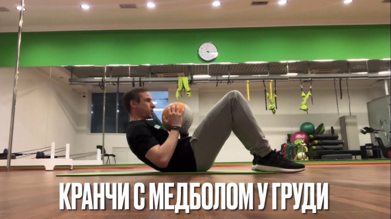 Кранчи с медболом у груди (MEDICINE BALL CRUNCH)