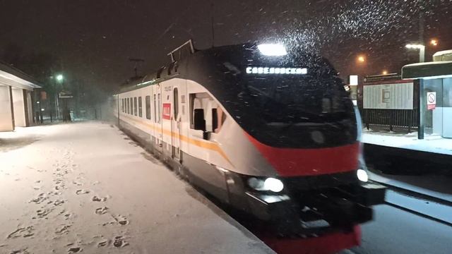 Снегопад в Москве. Электричка опаздывает и летит на платформу Водники МЦД-1 в сторону Москвы