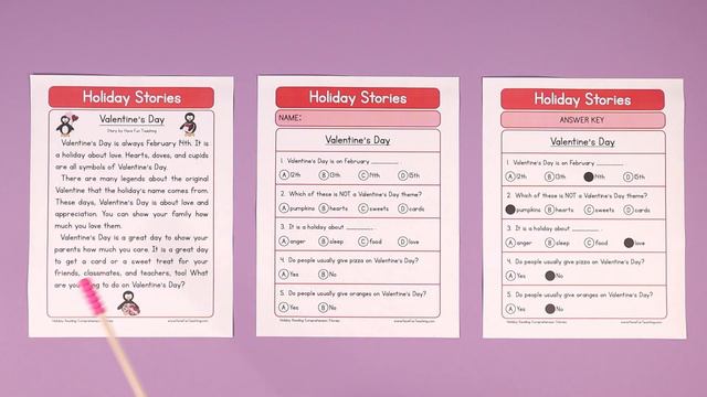 Download this Valentine’s Day Reading Comprehension Worksheet teaching resource: https://www.havefunteaching.com/resource/subject/reading/reading-comprehension/valentines-day-reading-comprehension-worksheet/ This Valentine’s Day Reading Comprehension Worksheet will help your students build their reading comprehension skills while reading about Valentine’s Day. Your students can use this reading comprehension worksheet to practice reading strategies like underlining/circling key details, marking the text, and referencing the text to find supporting details. First, read the questions. Then, read the passage. As you read, underline or circle key words or phrases in the passage that are key details. After reading, use the passage to help you find the answers to aligned questions.