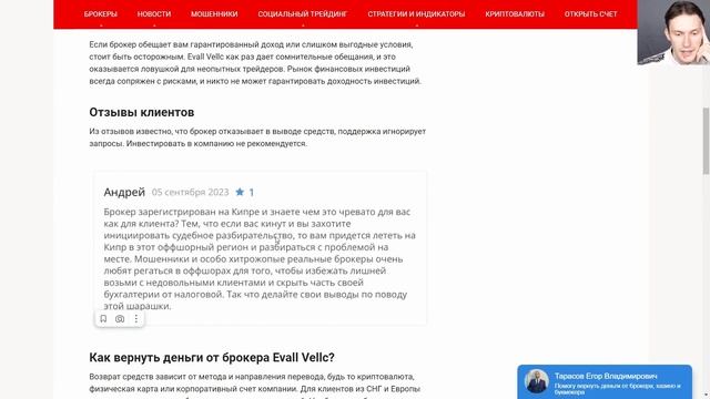 Обзор брокера Evall Vellc (evallvellc.com), реальные отзывы трейдеров. Это очередной развод и мошенничество? Как можно вернуть обратно свои деньги от брокера Евалл Веллс? Помогите мне если вы стали жертвой финансовых мошенников: брокеров, казино, подставных криптобирж или купили онлайн-курс, который не оправдал ожиданий, свяжитесь со мной. Я хочу помочь и дать максимальную огласку! Напишите мне в телеграме https://t.me/DengiVernite 1️⃣Если вам нужны инструкции по самостоятельному возврату денег https://t.me/quiz_DengiVerniteBot 2️⃣Узнать, обманывает ли вам брокер: @ProverkaDengiVernite_bot 3️⃣Анонимно проинформировать о возникших проблемах с компанией и запросить проверку в Центробанке РФ: https://t.me/reportiing_bot 4️⃣Если вы стали жертвой мошенников и вам нужна помощь - пишите в бот-помощник https://t.me/HelpDengiVernite_Bot 5️⃣ Рассказать мне свою историю и получить поддержку https://t.me/StoriesDengiVerniteBot
