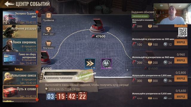 Способ как получать больше наград за дикого титана с радара. Обычно можно 2 раза собрать, но способ ниже дает гарантированно 3! а может и 4 (этот способ проверяется) радар обновляется 3 раза в день, через 8 часов. после смены суток идете и убиваете дикого титана, но! очень важно, чтобы вы награду за него не собирали на радаре, а оставили его там. После того как радар сменился (8-40 utc) - собираете награду. У вас появляется новая отметка дикого титана на радаре. Убиваете его и собираете награду, у вас появляется третья отметка. Особенность - я во время обновления радара был онлайн. Важно. если вы убили дикого титана первый раз и собрали награду. и не стали убивать вторую отметку дикого титана - после смены радара она пропадет. и у вас будет только 1 дикий титан в сутки, больше он не появится. Спасибо что смотрите серии по этой игре. Чтобы оперативно узнавать о начале трансляции с той или иной игрой можно подписаться на группу в телеге. При включенных уведомлениях сразу будет известно что начался новый стрим. Телега - https://t.me/+q05gx65ElqhkODgy Группа в VK - https://vk.com/kanmeigaming Канал на Twitch - https://www.twitch.tv/kanmei Ютуб - https://www.youtube.com/@kanmeigaming Рутуб - https://rutube.ru/channel/35657152/ Дзен - https://dzen.ru/kanmeigaming Рефер в State of Survival - https://sos.kingsgroupgames.com/pc/invite/r40j4yg Немного о донате. Реф на бусти (мой бусти ниже) - https://boosty.to/kanmeigaming/ref Собираем немного денег чтоб прикупить на авито различные игры для дальнейшего прохождения на стримах с последующим пополнением архива на ютубе. В списке можно выбрать из нескольких игр. На какую раньше соберем, ту и будем проходить в первую очередь, тfк как будет явно в фаворите среди зрителей. В сообщении доната можно добавить название любой другой игры, которую вы хотите увидеть в стримах. Если ее нет у меня на аккаунте плойки, то можно будет организовать сбор на покупку игры. Стримлю с плойки, поэтому сообщения из доната в стрим не попадают, но я их обязательно прочитаю в списке сообщений. Всем спасибо. Ссылка на донат - https://www.donationalerts.com/r/kanmei Бустик на всякие другие цели - https://boosty.to/kanmeigaming/donate