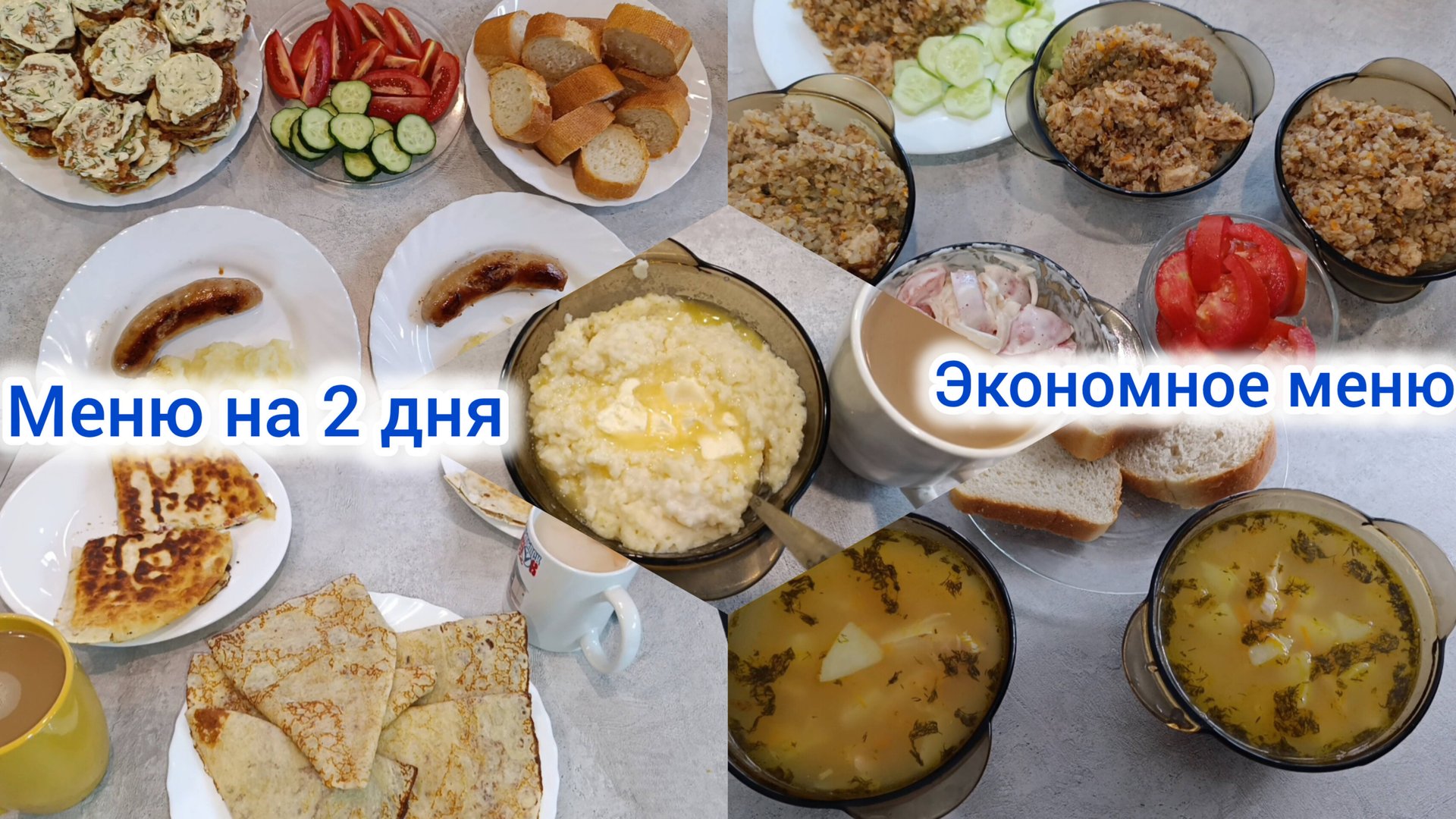 Экономное меню 🍲. Меню за2 дня 🗓️ на 4-х человек 🏠.
