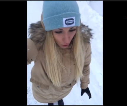 Девушке залепили снегом в лицо. #прикол #девушка #зима #фейл #снег #забава