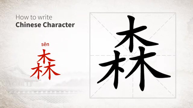 森 (sēn) forest; dark, gloomy; multitudinous / лес; чаща *густой; во множестве